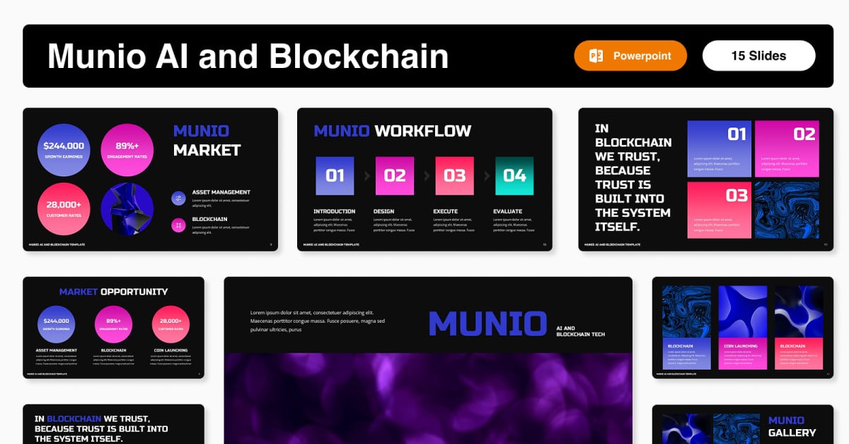 Munio AI and Blockchain PowerPoint Template Present futuristic ideas with confidence using the Munio AI and Blockchain PowerPoint Template — a modern, tech-focused, and fully customizable deck designed for startups, tech companies, and professionals in the AI, blockchain, and fintech industries. With sleek layouts and infographic-ready slides, this template is perfect for explaining complex concepts,…
