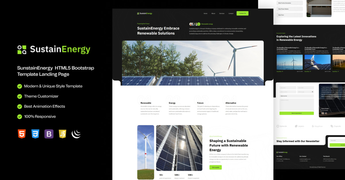 Sustain Energy – HTML Landing Page Template for Solar, Renewable and Green Energy Solutions