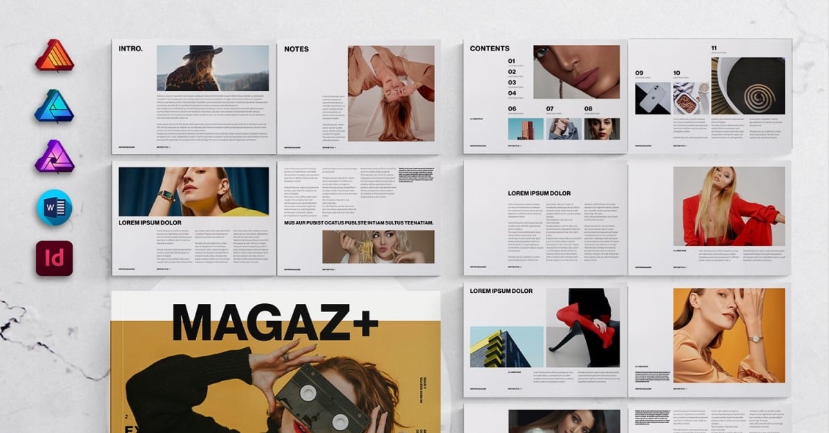 Inspiring Magazine Template Landscape for MS Word, InDesign, Affinity Suites
