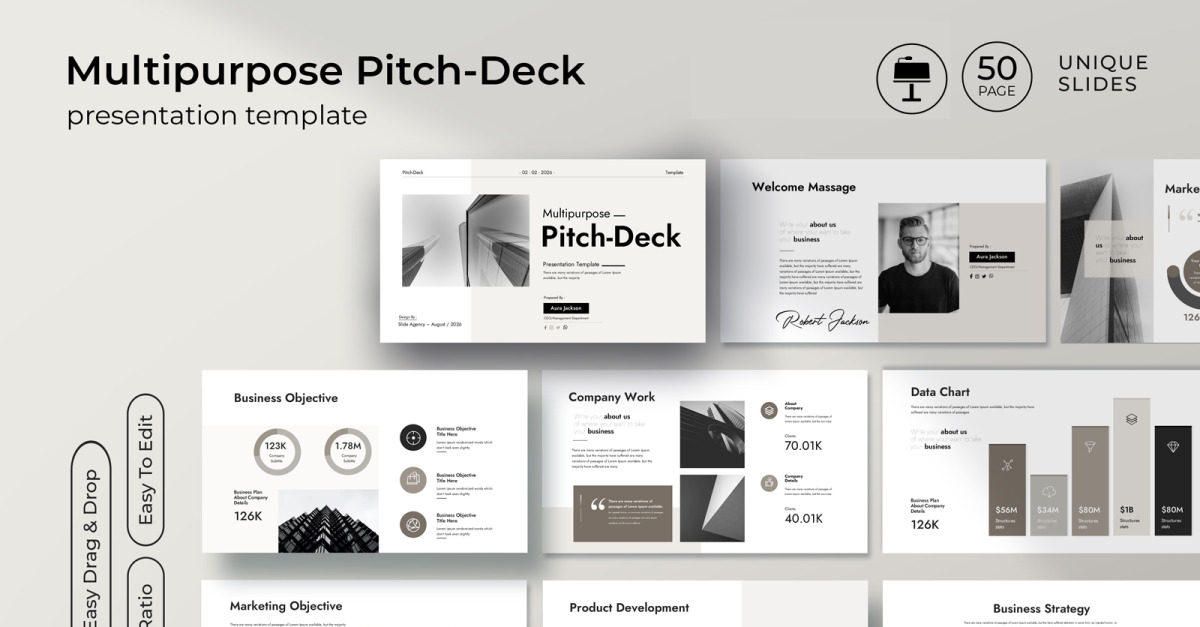 This presentation template is Ideal for agencies, freelancers, and professionals, this template offers a modern, sleek, and professional design concept, enabling you to create high-quality pitch decks in a matter of minutes. Say goodbye to the hassle of starting from scratch and focus your valuable time and attention on crafting compelling content, while the engaging…