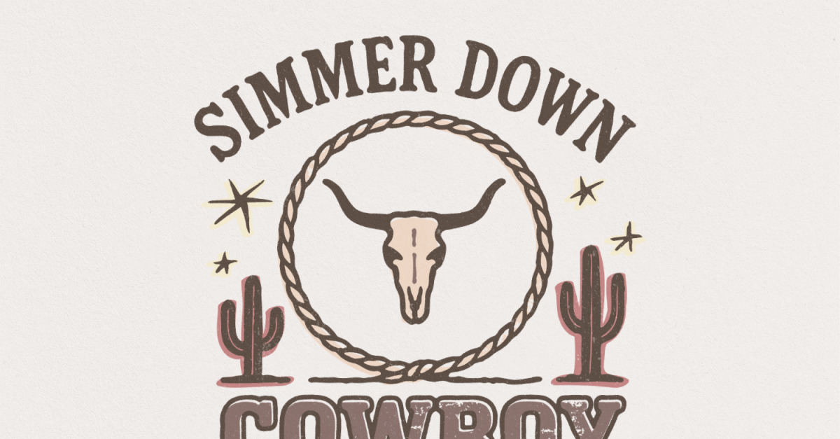 Simmer Down Cowboy PNG, Longhorn Western PNG Tee Design, Retro Desert Cactus PNG, Vintage Cowboy