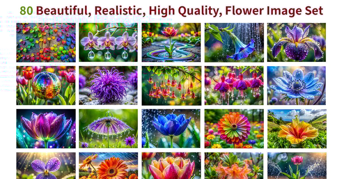 80 Beautiful, Realistic, High Quality Flower Image Set Great photos for bloggers, calligraphers, naturalists, websites, magazines, business owners, professionals looking for something special to promote their social media accounts. Also, these photos are ideal for posting on social networks. You can use this photo as your mobile wallpaper, Graphical Background, Computer Screen Wallpaper, Web design…