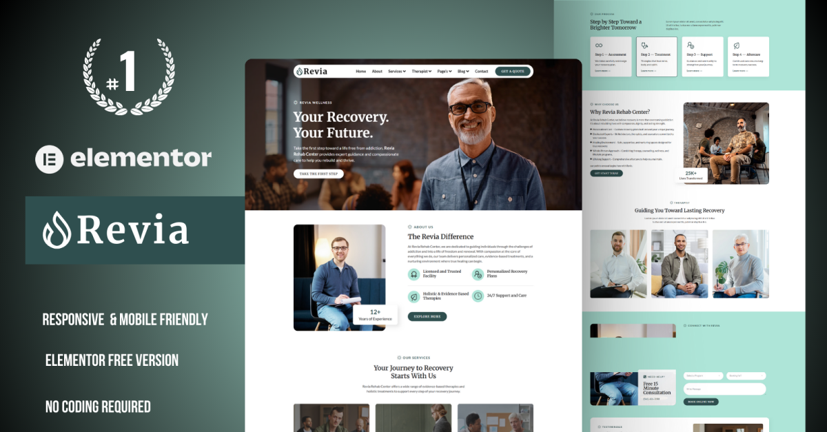 Revia – Rehab Center WordPress Elementor Template Kit