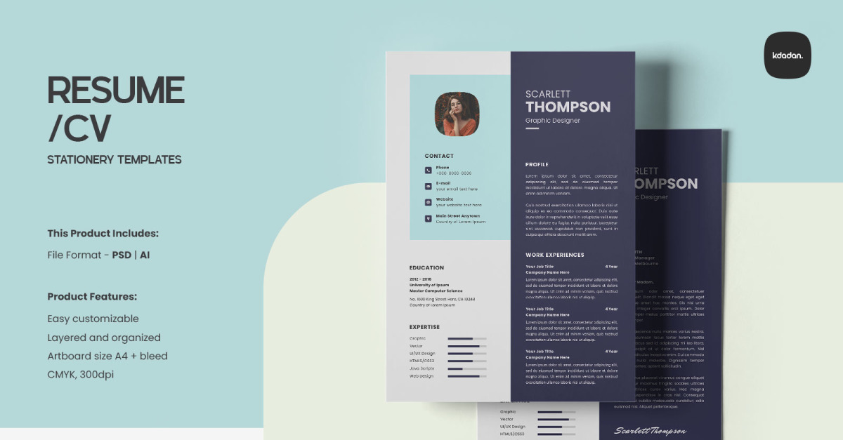 It is Resume Template Design.This template download contains 300 DPI Resolution, Print-Ready format, CMYK Color Setting, All main elements are editable and customizable. Features Editable and customizable A4 Us Letter Size Bleed setting (6 mm) Print Ready Format 1 Design 1 Color Variation Cmyk color Settting 300 dpi resolution Working File Photoshop Cc 2019 Help…