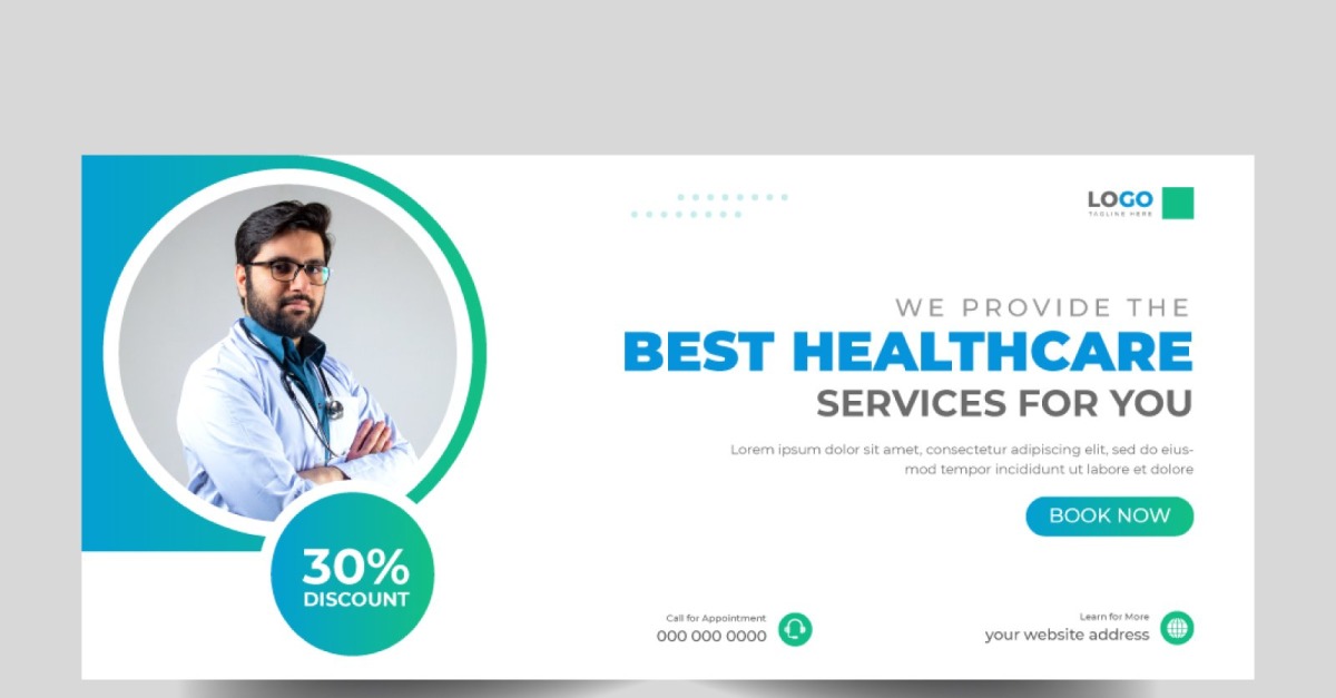 Present your healthcare brand with professionalism using this Medical Healthcare Social Media Facebook Cover Banner Template. Designed in Adobe Illustrator, this banner features a clean layout, calming colors, and medical-themed vector elements that enhance credibility and trust. Ideal for hospitals, clinics, health centers, and telemedicine promotions, it’s fully customizable to match your brand’s identity. Whether…