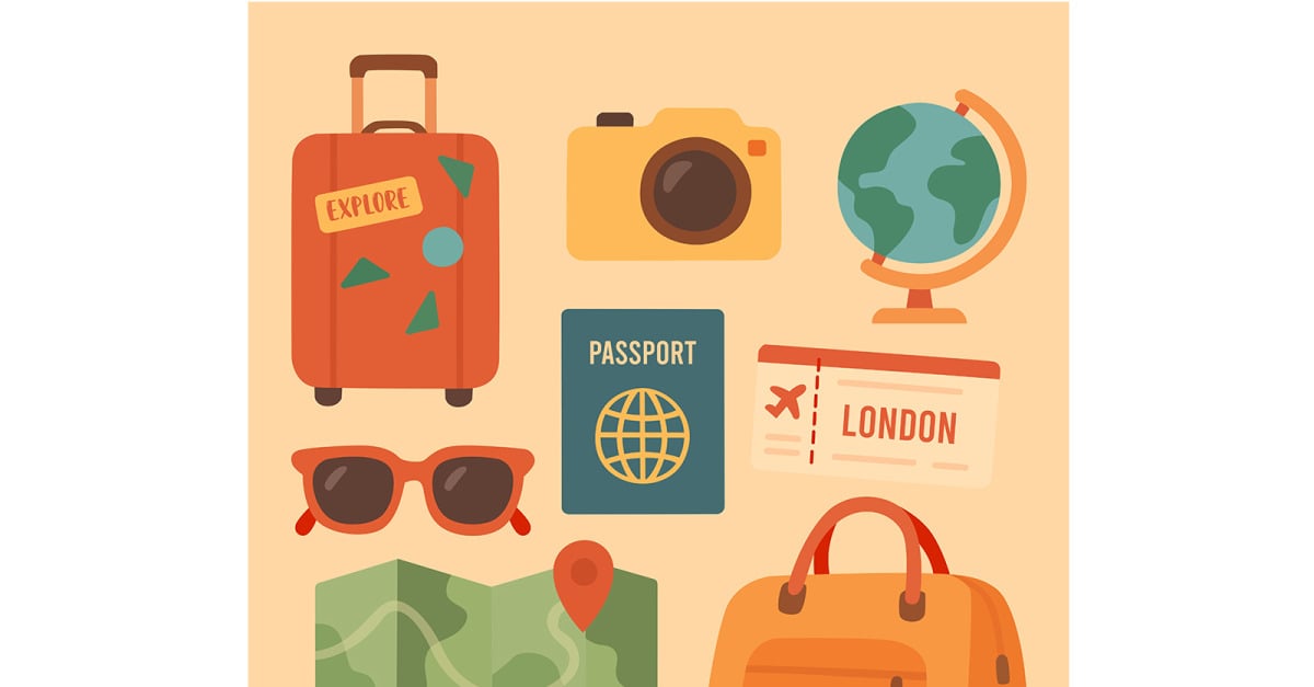 Collection of Travel-Related Objects Set clip art