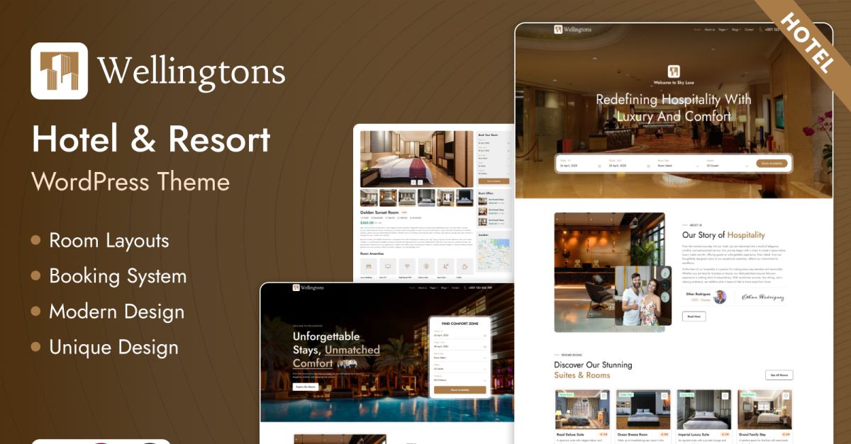 Wellingtons – Luxury Hotel & Resort Booking WordPress Theme is a premium, elegant, and fully responsive theme crafted for luxury hotels, resorts, villas, guesthouses, and boutique accommodations. With a sophisticated design and powerful booking functionality, Wellingtons enables hospitality businesses to showcase their property in style while offering a seamless reservation experience to guests. This theme…